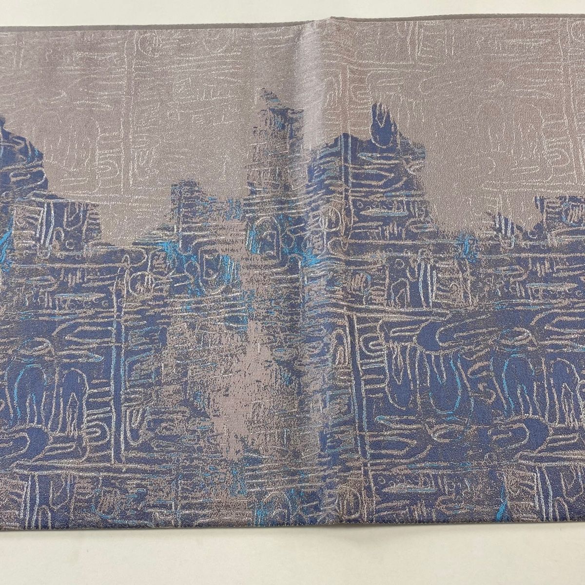 袋帯 秀品 風景 五重塔 箔 薄紫 お太鼓柄 正絹