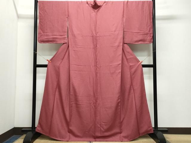 平和屋着物●上質な色無地 吉祥地紋 蘇枋色 正絹 ♥ vf