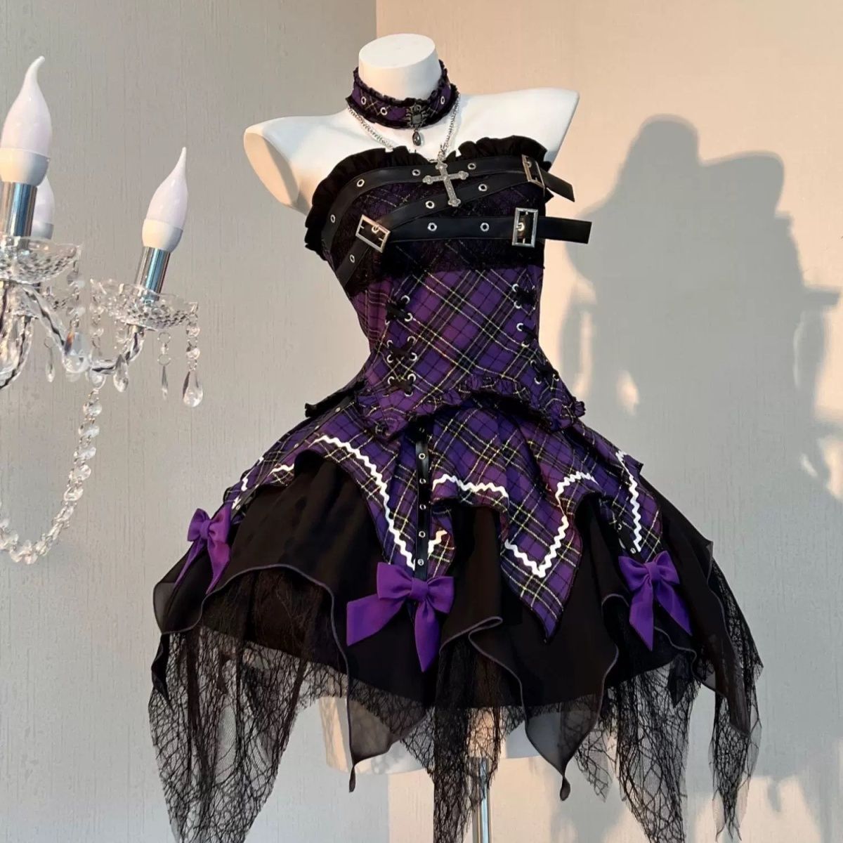 秋冬発売 甜辣ロック風 アビゴスロックセットアップ 抹胸トップス フ スカート チョーカー付き 撮影会 舞台演出 推し活 イベント用 大人レディース プレゼントにも最適