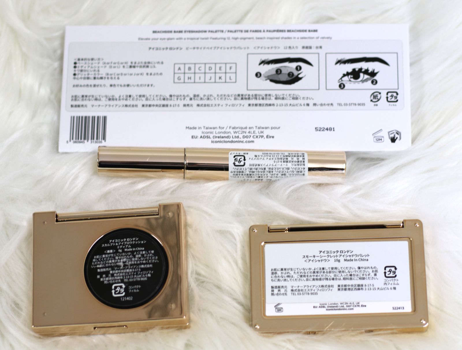 【アイコニックロンドン ビーチサイドベイプアイシャドウパレット12色入×1箱 トリプルマスカラ内容量9ml×1箱 スモーキーシークレットアイシャドウパレット内容量10g×1箱 スカルプト&アイブロウクッションミディアム内容量6g×1箱 4箱セット】