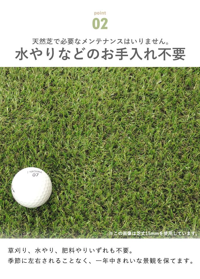 敷くだけで簡単に緑のお庭が完成するリアルな人工芝です。芝刈りや水やり不要で、一年中美しい緑をキープ。茶色の枯葉が混ざった自然な風合いで、土・コンクリート・木材など幅広い場所に設置可能。ハサミやカッターで簡単にカットできるので、お庭やベランダ、バルコニーの施工もラクラク。一定間隔で水抜き孔があるため水はけがよく、強粘着両面テープやU字ピンで固定できます。透水性・保水性に優れ、夏場の温度上昇を抑制し、衝撃吸収性も高いため安全で快適。遮光率100%で雑草の発生も防ぎます。