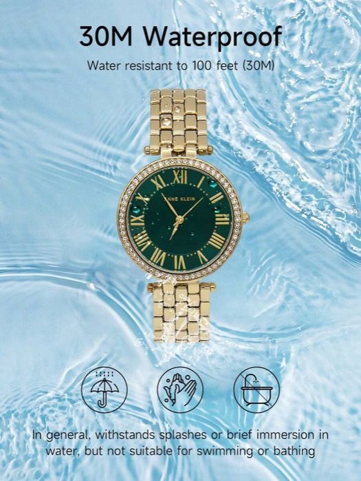 腕時計 レディース クォーツ クリスタルアクセント ゴールドトーン ブレスレットウォッチ グリーンサンレイダイヤルウォッチ 調節 リンクブレスレット 防水クォーツウォッチ