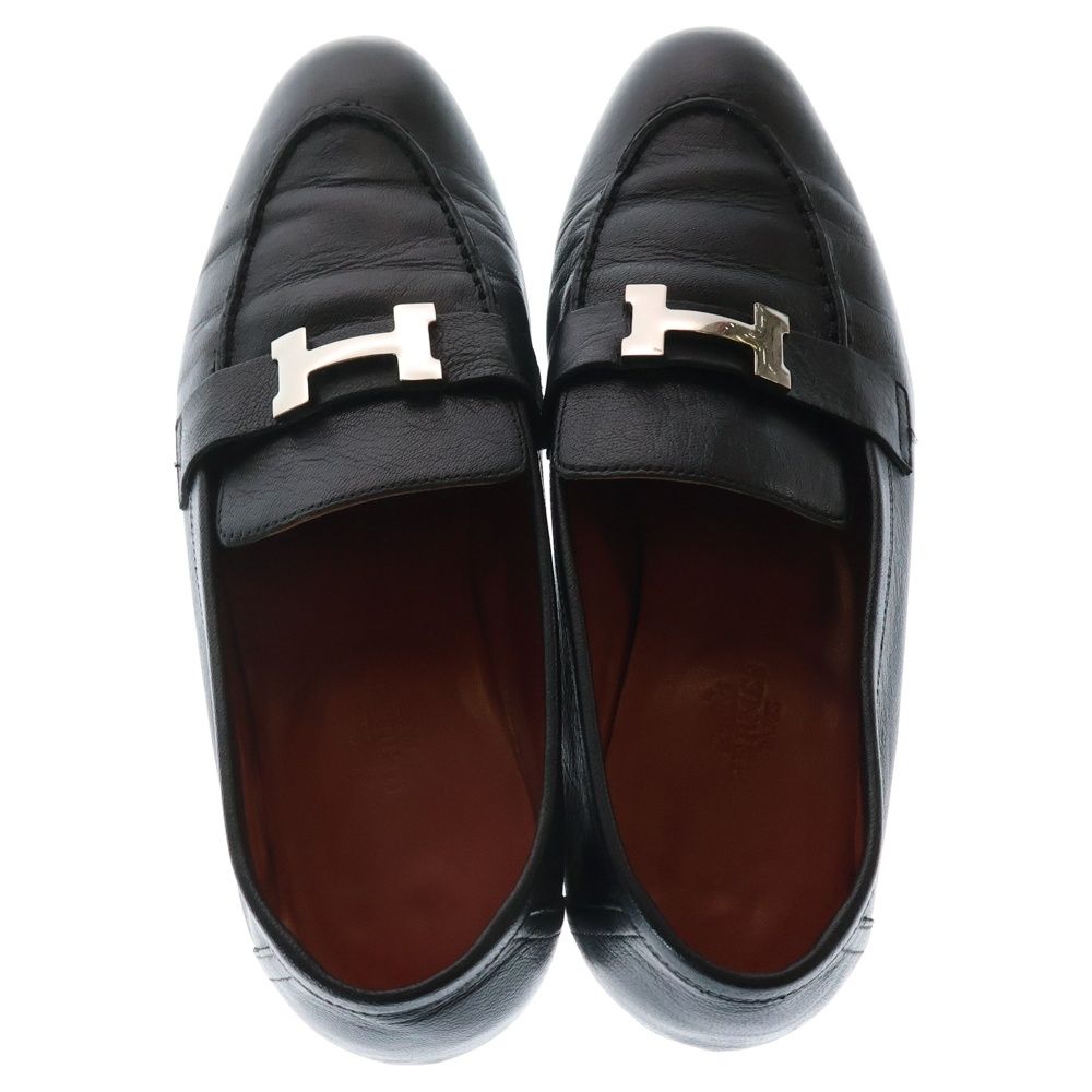 HERMES エルメス モカシン Hロゴ レザーローファー ブラック