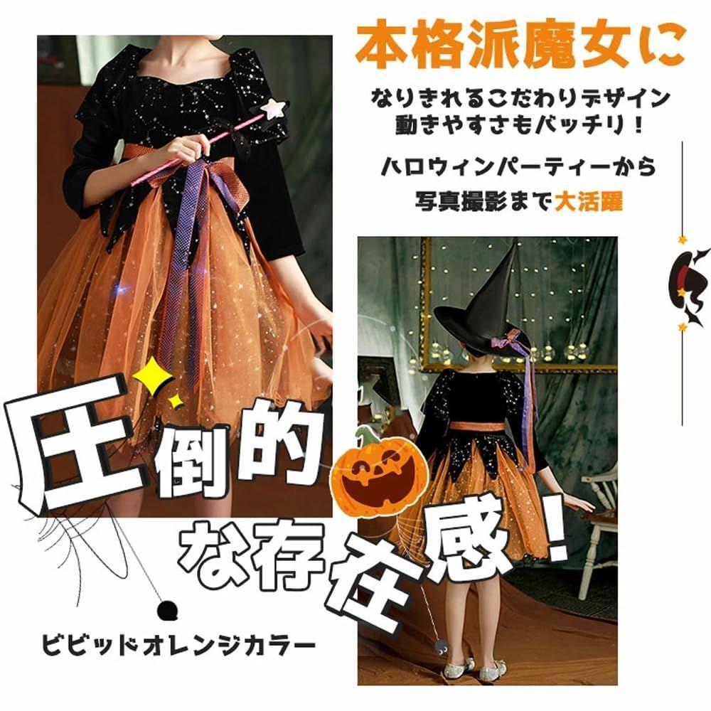 ハロウィンのトリックオアトリートや仮装パーティーで子供が一目で際立つ、女の子向け専用の魔女コスチュームで、遊戯会・文化祭でも活用可能です。