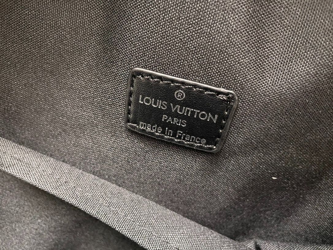 皆様、こちらは Dean のダブルショルダーバッグです。高品質な Monogram Macassar 素材を使用し、スポーツ的な雰囲気をたっぷりと出しています。革の角部分にはプレス加工が施され、ルイヴィトンの花柄のエンボスでさらにエレガンスな雰囲気を演出しています。