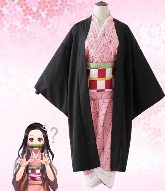 鬼滅の刃 竈門禰 豆子 コスプレ衣装 フルセット - 着物 羽織 ウィッグ付き