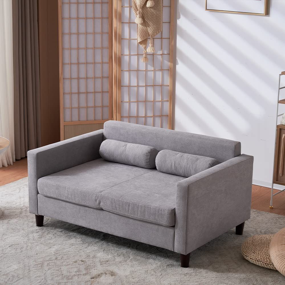オーエスジェイ(OSJ) ソファー 2人掛け 幅116.5×奥行き53 クッション付き 取り外し可能な背もたれ ローソファ ヘッドソファー 北欧 肘付き レイアウト自由 カウチ 傷防止フェルト付き 弾力 ソファーベッド 天然木脚 sofa ベージュ