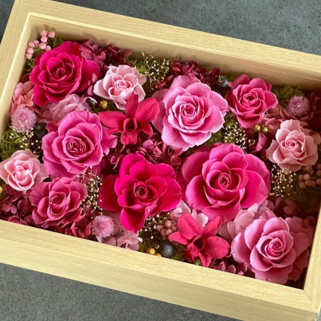 プリザーブドフラワー Frame Arrangment n 10-1335 ピンク フレーム型 13 p 入り 高さ27 cm 薔薇 ブリザアレンジ ギフト インテリア