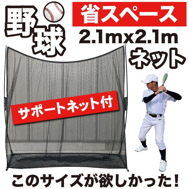 パターマット工房から直送 野球練習インパクトネット2.1 横幅2.1 m サポートネットII同梱セット 省スペース 軟式 ソフトボール用 バッティング 練習