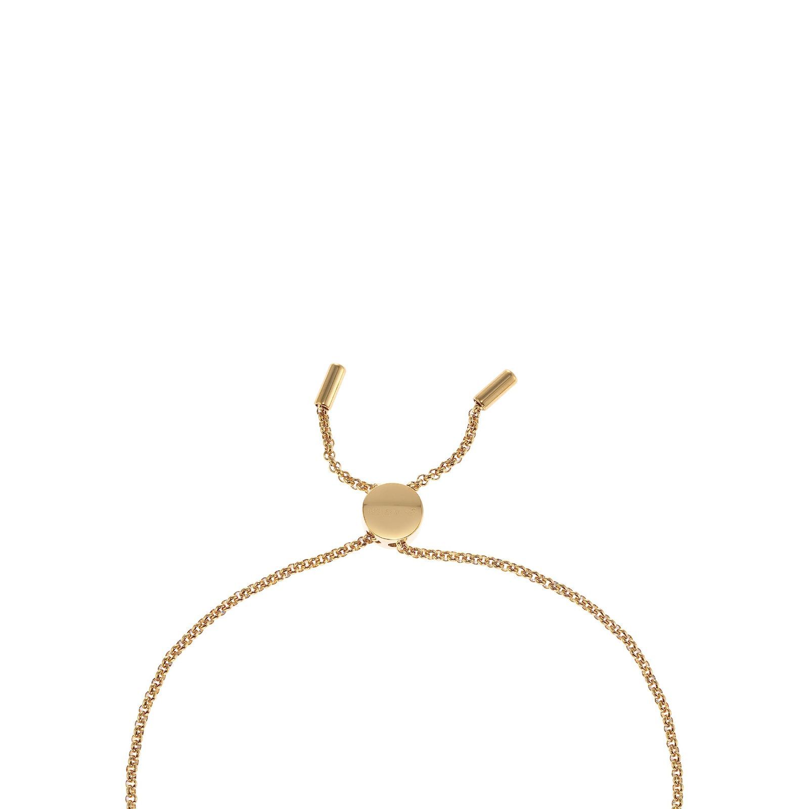 This station bracelet features a gold-tone stainless steel chain accented with honey glass and gold-tone pebbles. Featuring a slider closure.