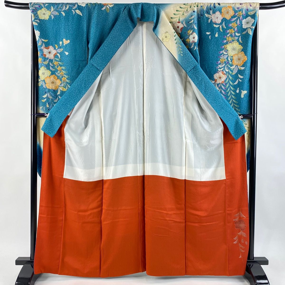 振袖 身丈164 cm 裄丈68 L 袷 辻が花 銀通し 金彩 青灰色 正絹
