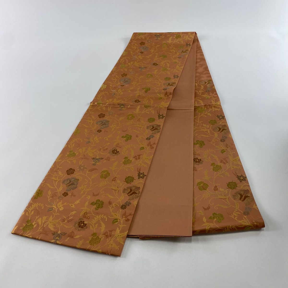 袋帯 秀品 西陣織 生命の樹 花唐草 箔 ピンクベージュ 六通 正絹