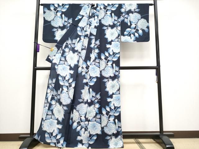 平和屋着物 上 夏物 撫松庵 セオアルファ 小紋 浴衣兼用 花鳥文 濃紺地 洗える着物 s 5