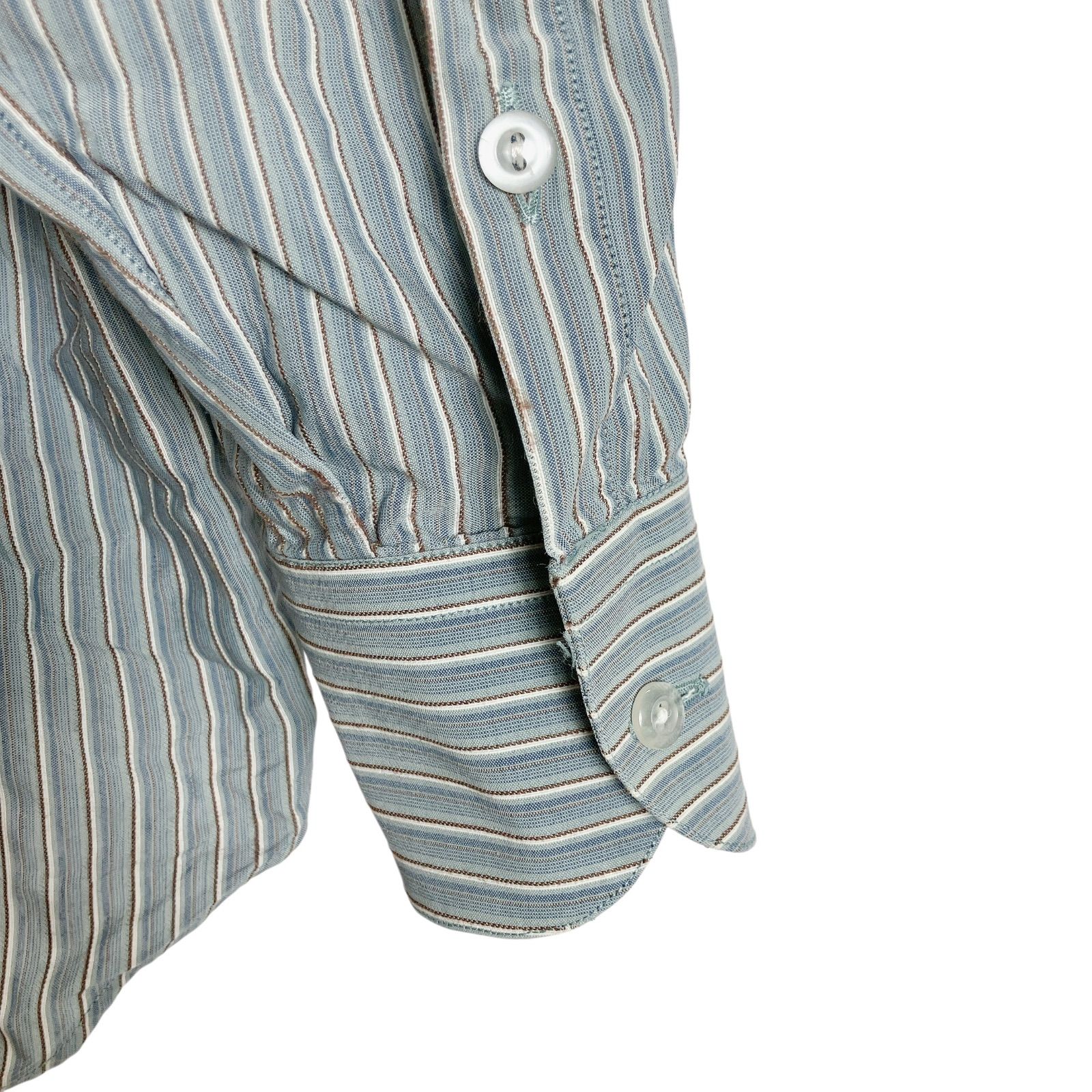 ATK 1 GIORGIO ARMANI ジョルジオアルマーニ ストライプシャツ 長袖 水色系 茶線 メンズ トップス 41|16 Lサイズ相当
