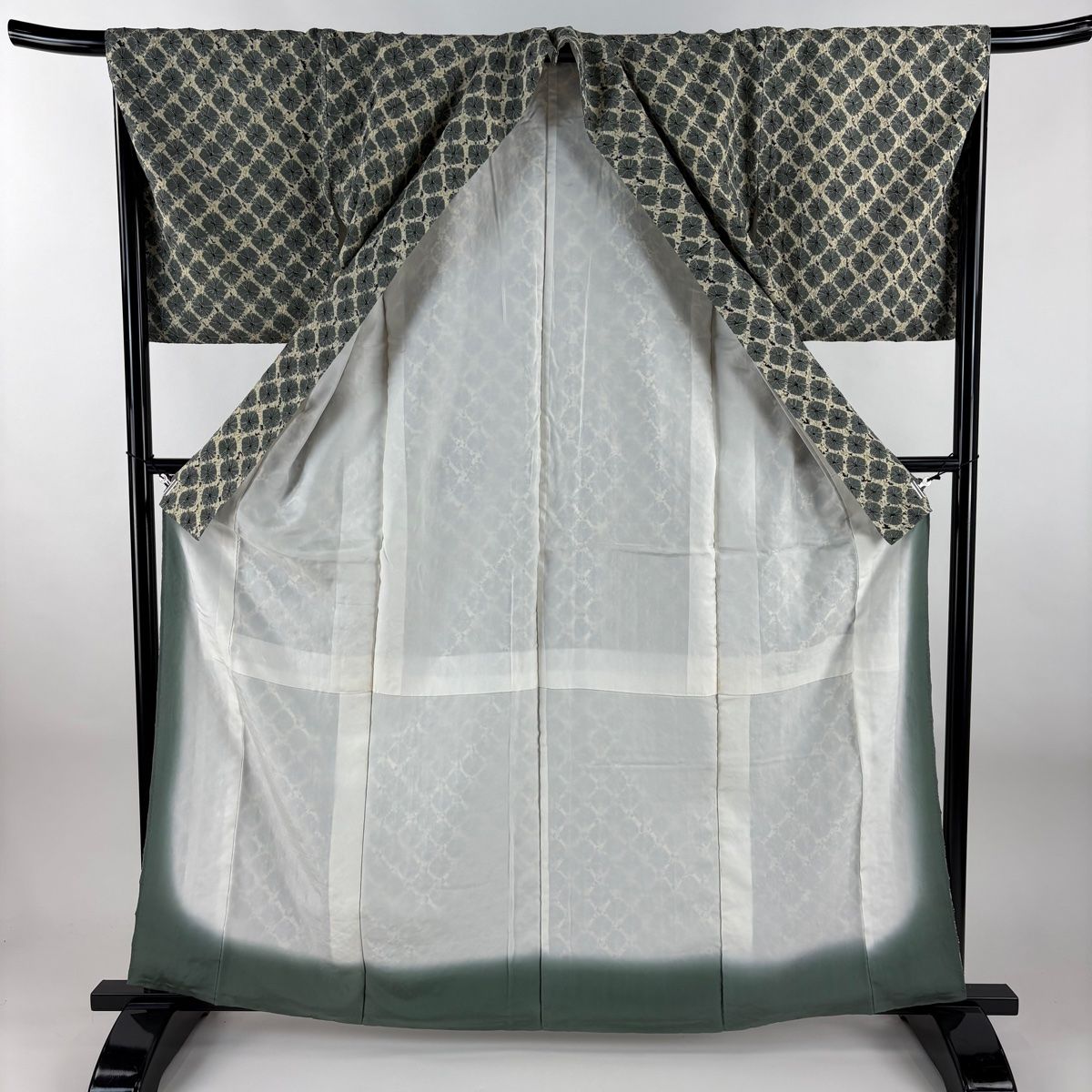 小紋 身丈162 cm 裄丈67 M 袷 幾何学模様 絞り2 灰緑 正絹 秀品