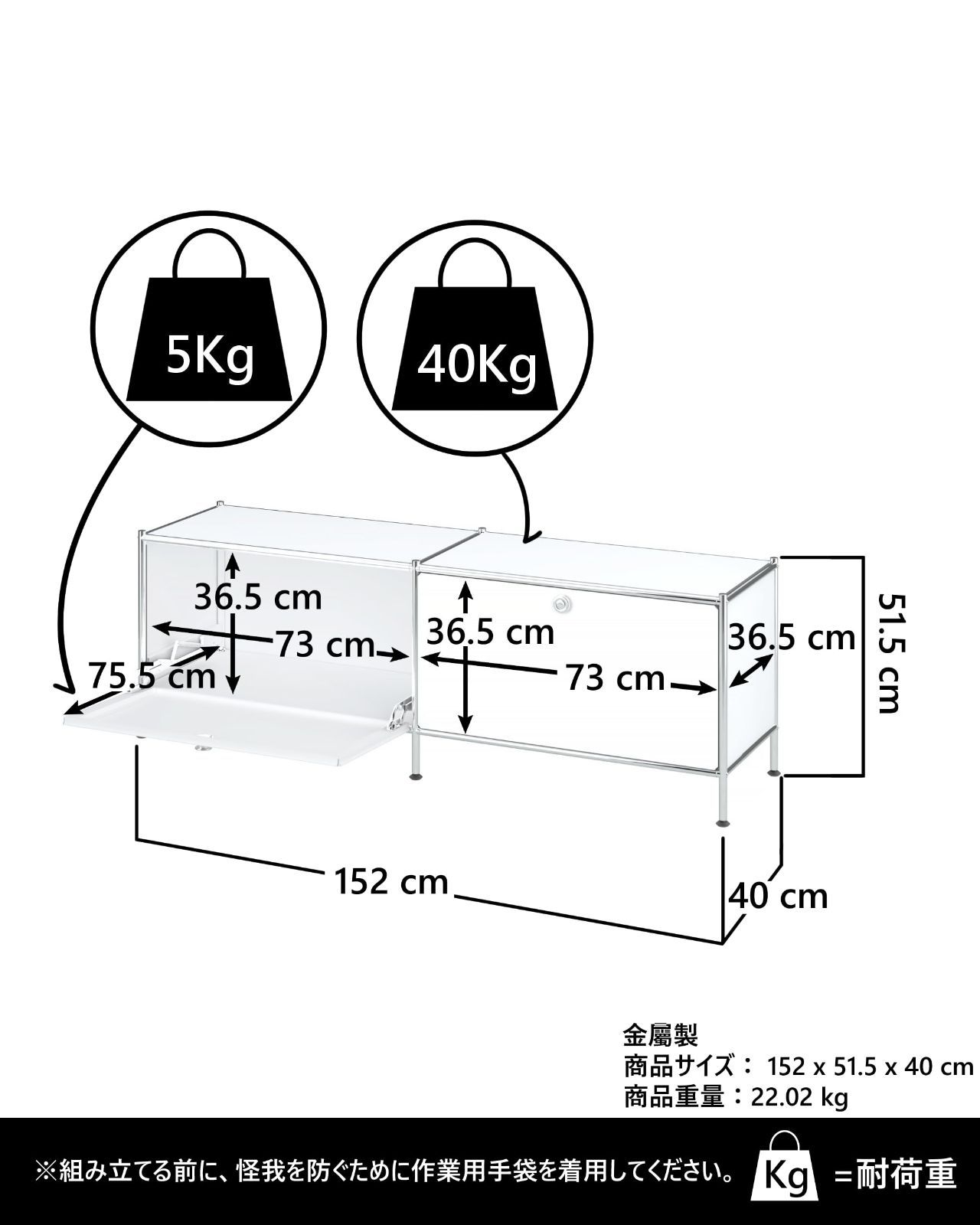 商品の寸法 40奥行き x 152.4幅 x 51.6高さ cm