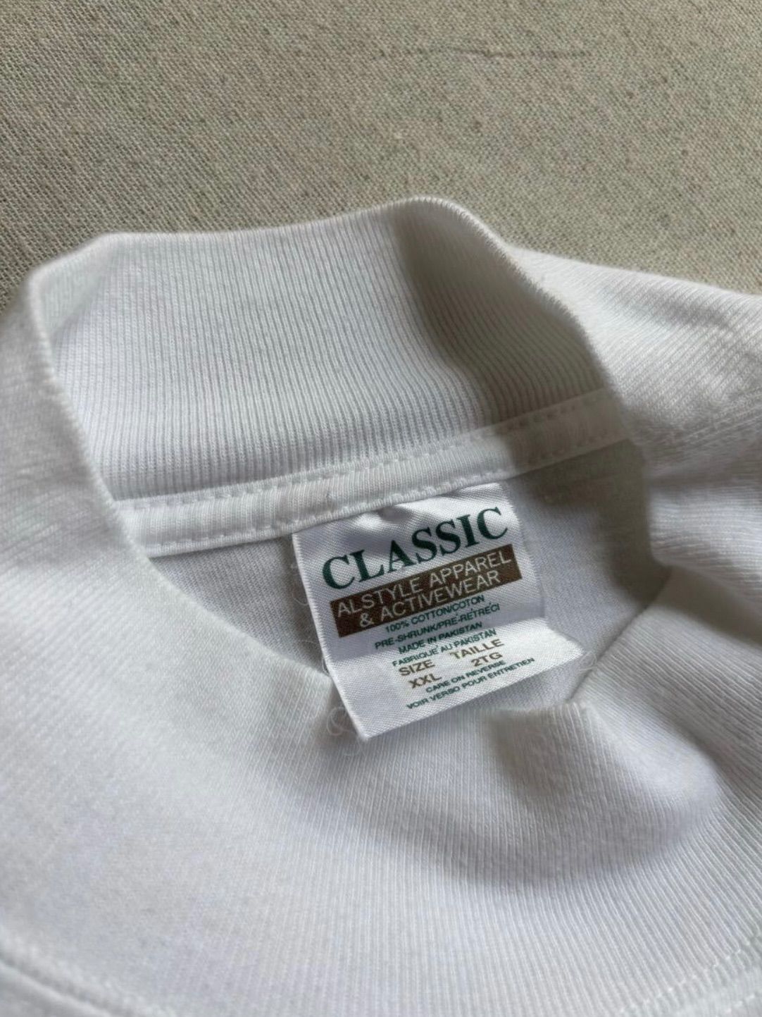 XXL USA モックネック ロンT コットン ホワイト プリント イラスト 動物 犬 長袖 カットソー ビンテージ T 5-06011-9277