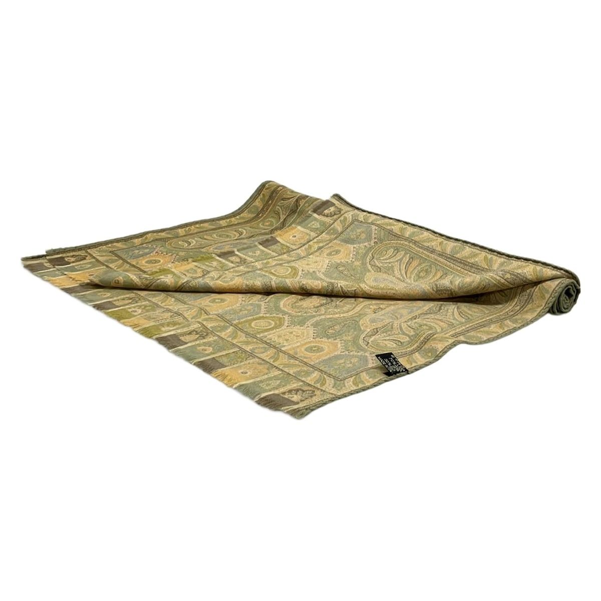ETRO エトロ ストール ショール - グリーン×イエロー×マルチ ペイズリー柄 フリンジ ウール シルク
