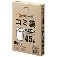 半透明より中身を見えにくくした白半透明タイプ●ゴミ袋●業務用パック●白半透明●規格:45l●入数:500枚(100枚×5箱)●寸法:縦800×横650×厚0.03mm●材質:低密度ポリエチレン●JOINTEXオリジナル●SMARTVALUEスマートバリュー