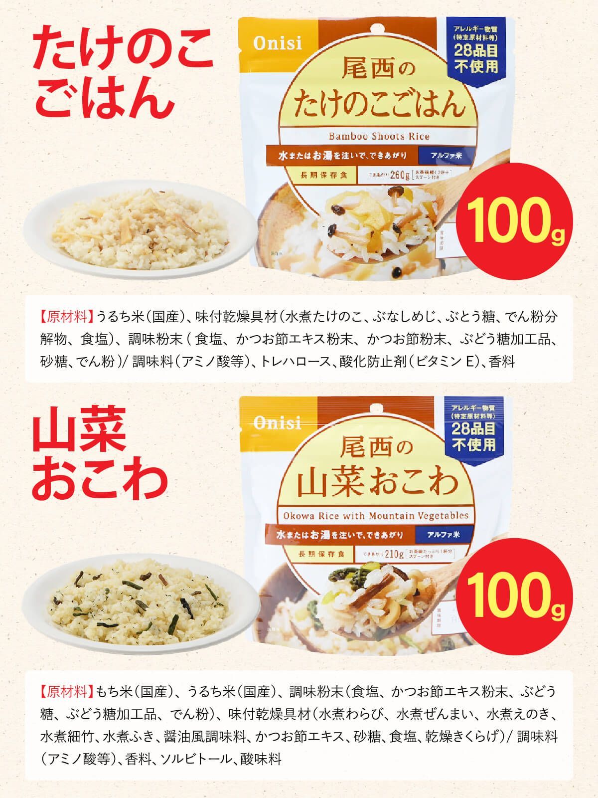 内容量 アルファ米ごはんシリーズ/100g