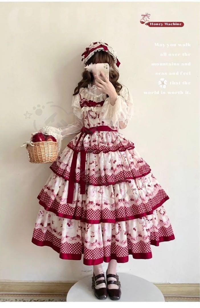 商品詳細:甘くてキュートなチェリー柄のロリータロングワンピースで、お出かけや女子会を特別に!ふんわりシルエットが魅力的で、ファッションに華やかさをプラスします。