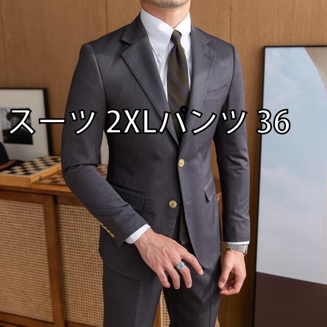スーツ 2 XLパンツ 36 メンズ ファッション 服 男性用 オシャレ シンプル 大人 かっこいい 大きいサイズ ストリート 紳士服 韓国スタイル グレー ビジネス カジュアル 快 ツーピース