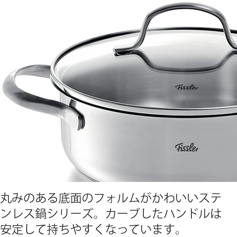 フィスラー Fissler 両手鍋 サンフランシスコ 液ダレしないフチ設計 24 cm 5 3 L 中身が見えるガラス蓋と便利な目盛り付き 無水調理 IH対応 シルバー 040 113 000 1