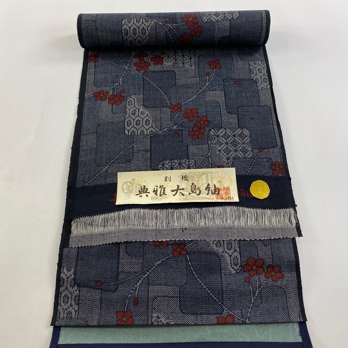 反物 秀品 紬 証紙 色紙 枝花 青灰色 正絹