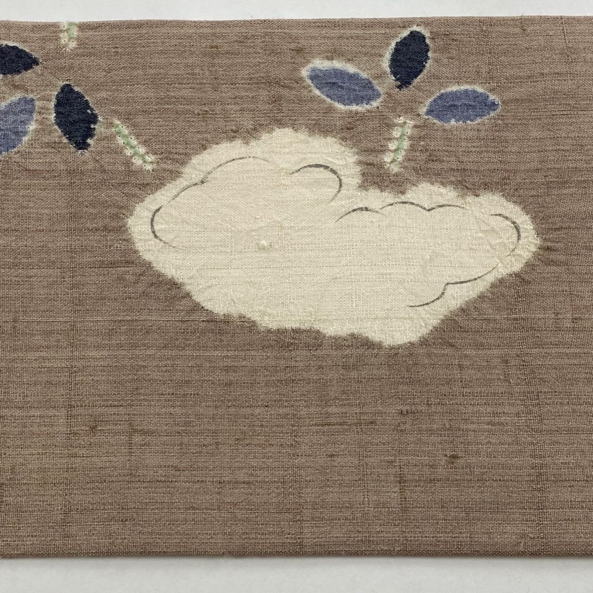 名古屋帯 紬地 キリン 雲文 絞り 薄茶色 正絹