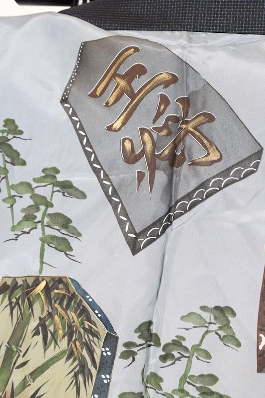 泥染め、藍染めを30回糸を染め上げた複雑な染めの工程、熟練の織り子さんが80亀甲で手織りした素敵なお品になります。額裏も凝ったものがついていますね。
