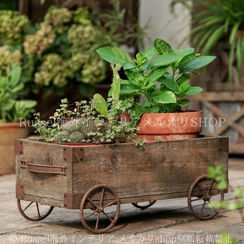 プランターラック 木製 無垢材 アイアンウッドカート 庭 プランターケース 木 植木鉢 鉢植え ガーデニング 雑貨 ガーデン雑貨 ガーデンインテリア ガーデン インテリア 庭の装飾 お洒落 おしゃれ 8-14