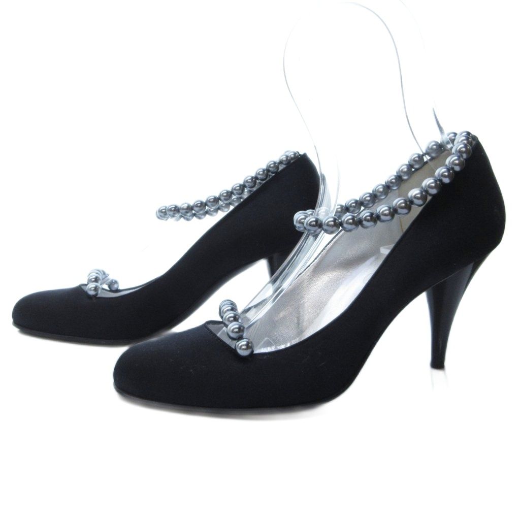 シャネル CHANEL パールストラップ パンプス ラウンドトゥ ヒール 黒 ブラック 約24 cm IBO 81