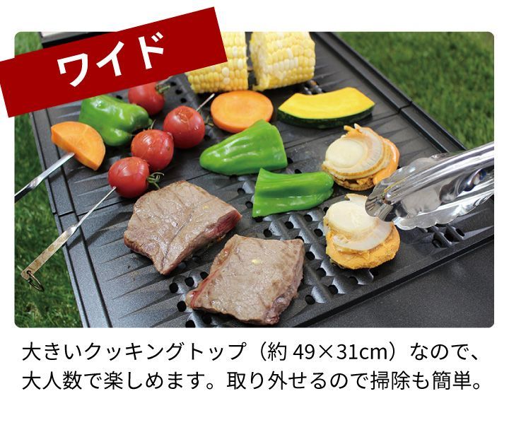 ●大きいクッキングトップ(約49×31cm)なので大人数にも対応!