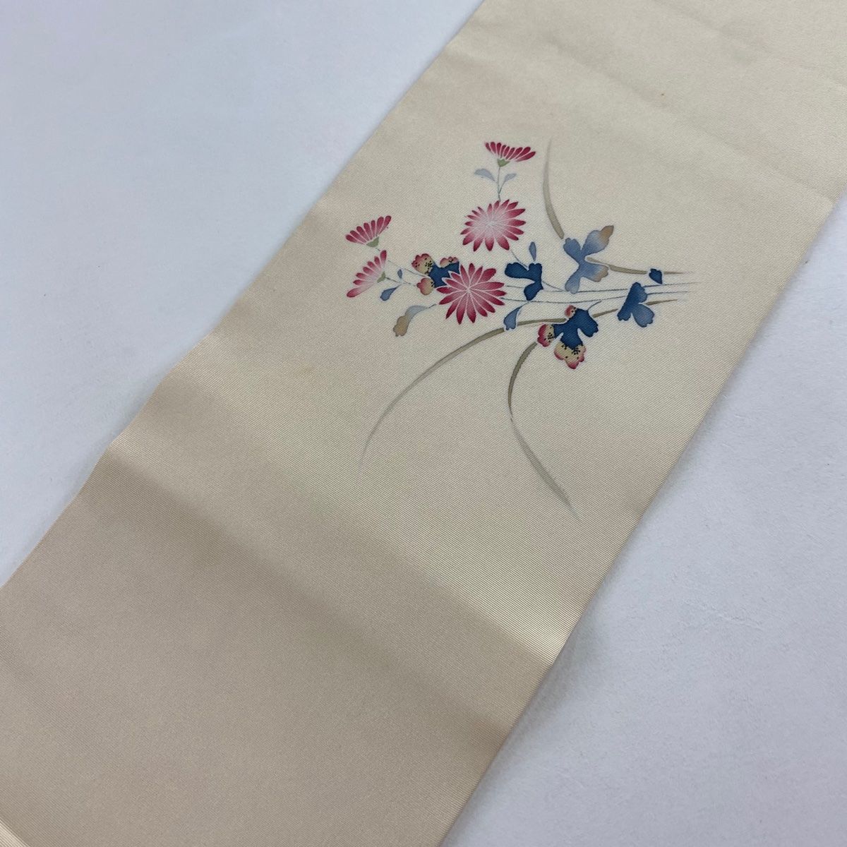 名古屋帯 秀品 落款 菊 クリーム 正絹