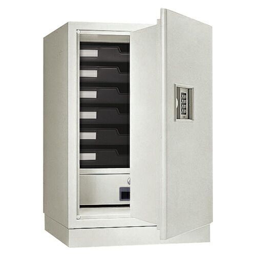 ●外寸/内寸(幅×奥×高mm):415×478×628/325×315×481●重量kg:78●容量l:50●耐火時間:1●解錠方法:テンキー錠●付属品:トレー6枚,鍵付引出し1個,単3アルカリ乾電池4本