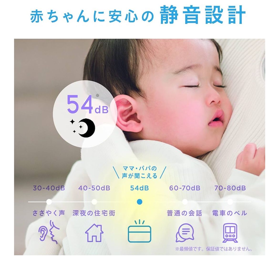 ママ・パパの声が聞こえやすい音の大きさだから、赤ちゃんが驚く心配もありません。