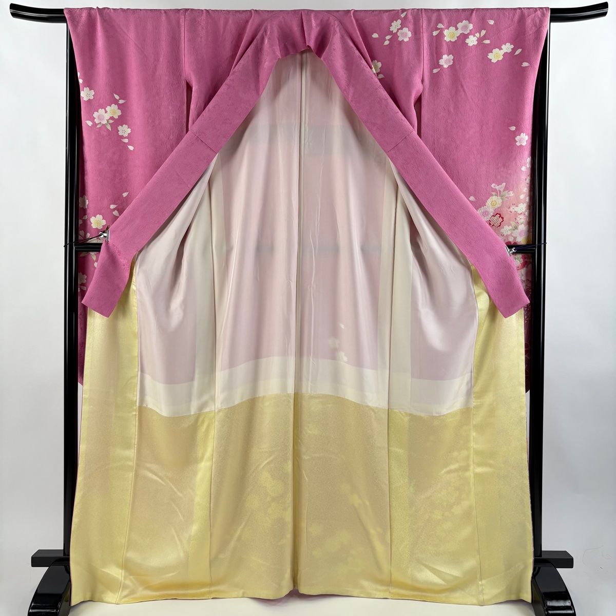 振袖 身丈169.5 cm 裄丈67.5 L 袷 袋帯フルセット 桜 地紋 ぼかし 金彩 ピンク 正絹