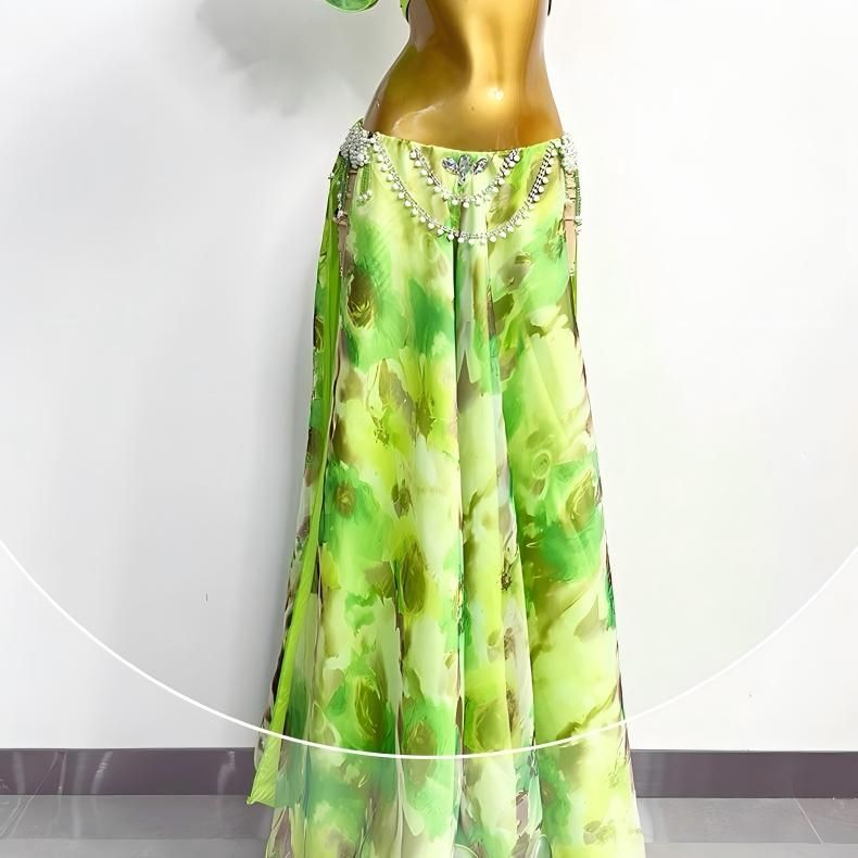 ベリーダンス衣装 トップスブラ スカート グリーン オーダーメイド M L
