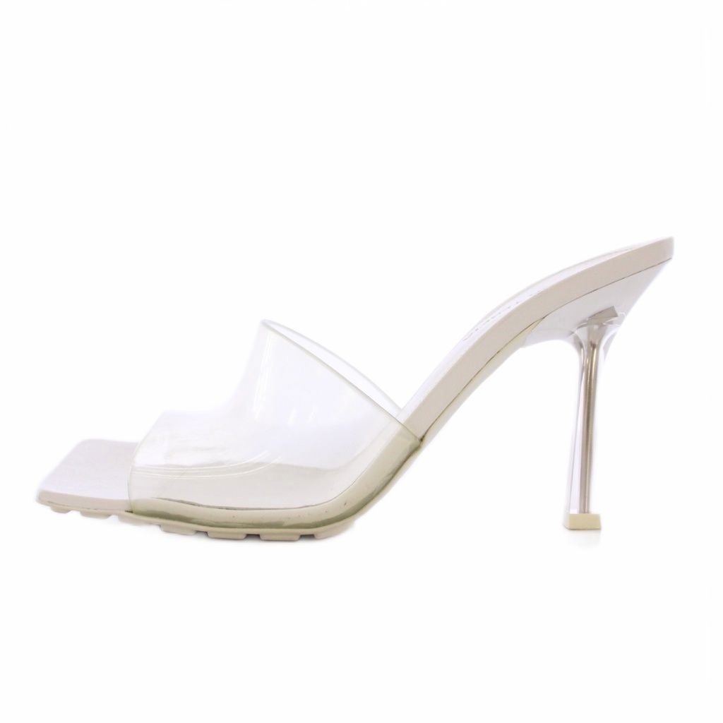 ボッテガヴェネタ BOTTEGA VENETA サンダル スクエアトゥ ハイヒール ラバー レザー 切替 バイ 37 クリア 白 ホワイト BB