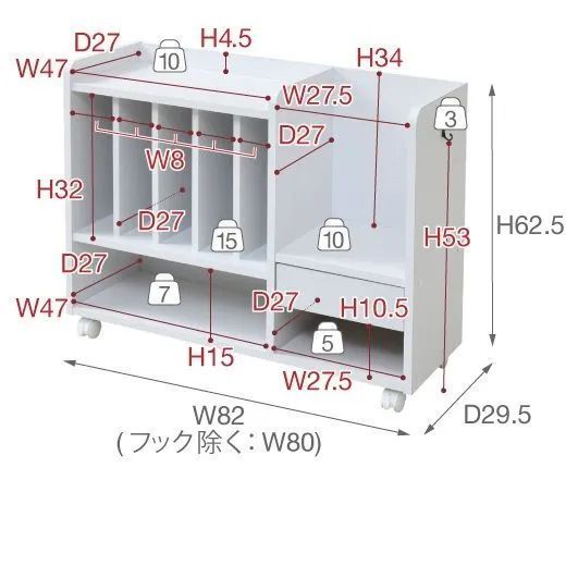 (サイズ:約 幅82cm × 奥行29.5cm × 高さ62.5cm)