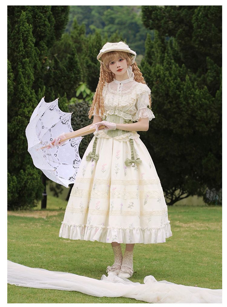 デザイン:優雅でクラシカルなロリータスタイル。フラワープリントとフリルのディテールがフェミニンな印象を与えます。