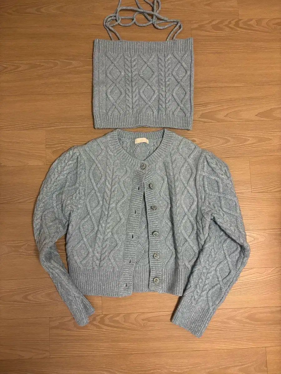 ヴァーヴ ケーブル編み ニット カーディガン セット ライトブルー