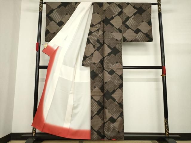 状態は接写画像のように袖口に薄い汚れ、八掛・胴裏にシミ、衿裏にホックシミがございますが