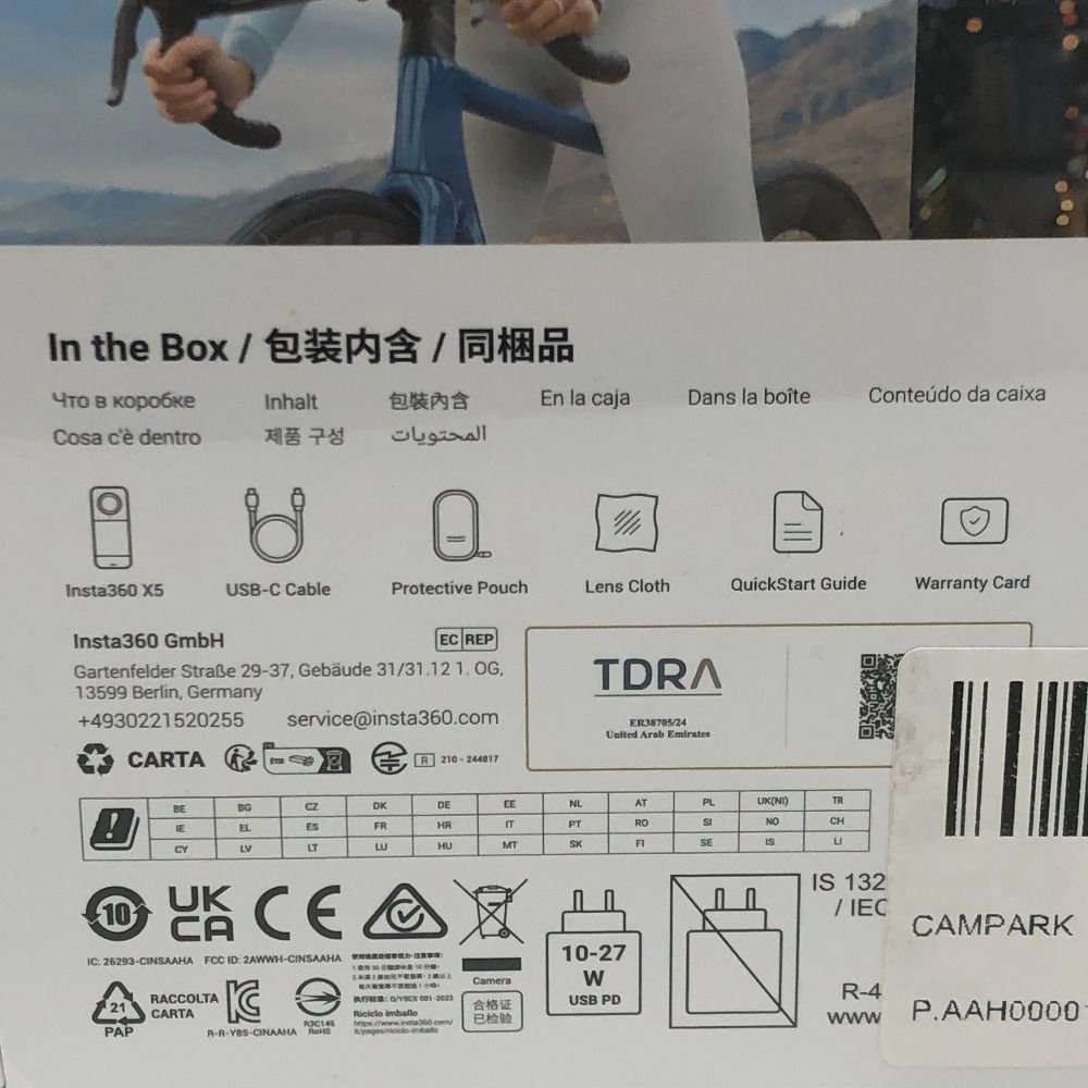 カメラ Insta 360 X 5 - 8 K CINSAAHA プラスチック ブラック