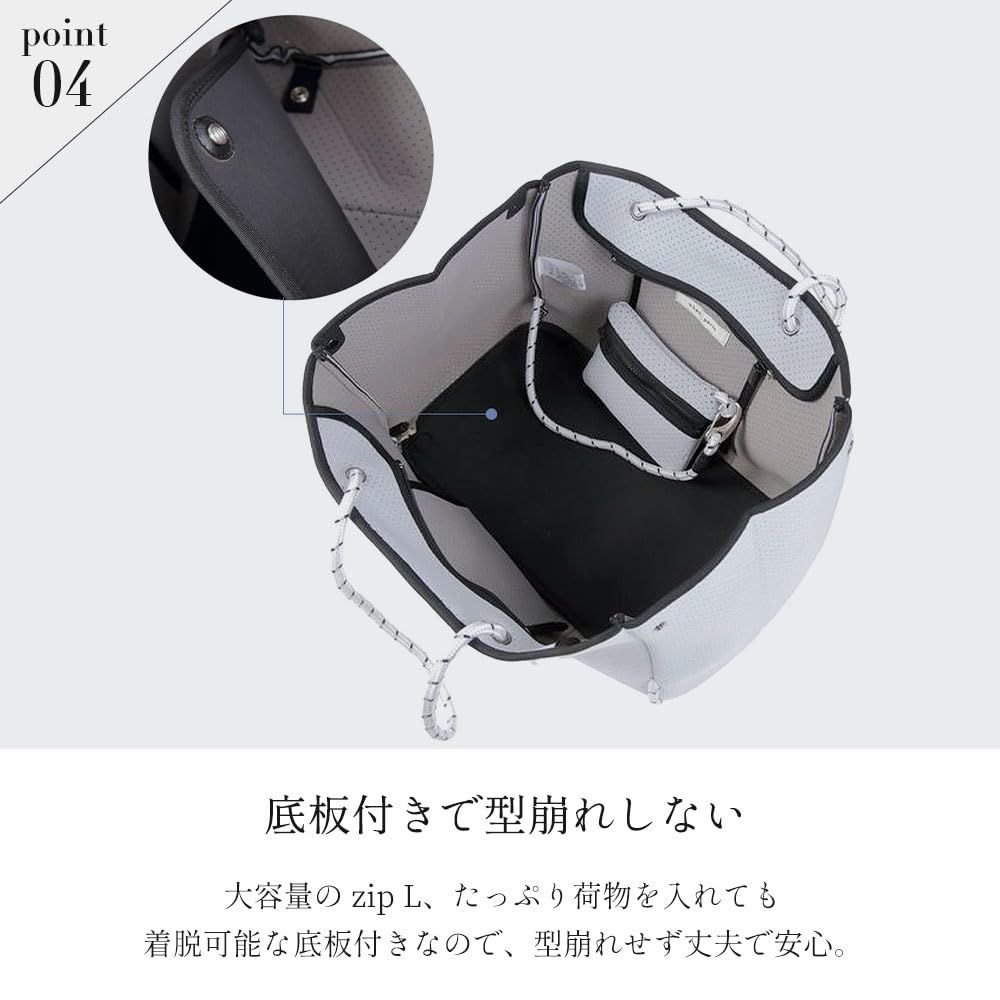 [qbag paris] ネオプレン Lサイズ ジップ付き トートバッグ ネオプレーン マザーズバッグ 大容量 大きめ 軽量 洗える カジュアル ビジネス 通勤 通学 a4 パソコン おしゃれ ファスナー付き (ブラック)