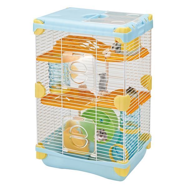 アスレチックロフト・ロープ・トンネル・回し車などの遊具で、ハムスターが楽しく遊ぶ様子が見られます。大きく天面が開きます。