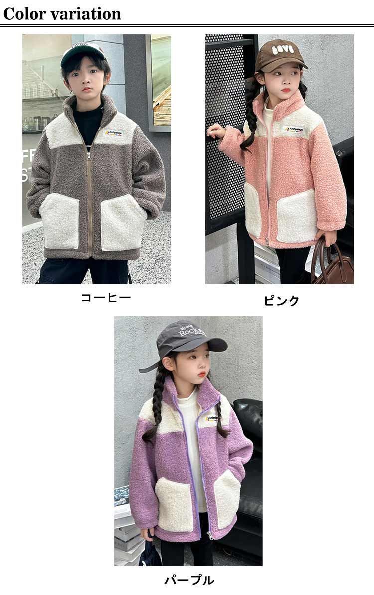 ボアジャケット キッズ 子供 秋冬 裏起毛 フリースジャケット ボアブルゾン ボアパーカー 子供服 ジュニア 女の子 男の子 ふわふわ もこもこ 冬用 アウター 配色 防寒 トップス ジャンパー あっ zjjj 2950