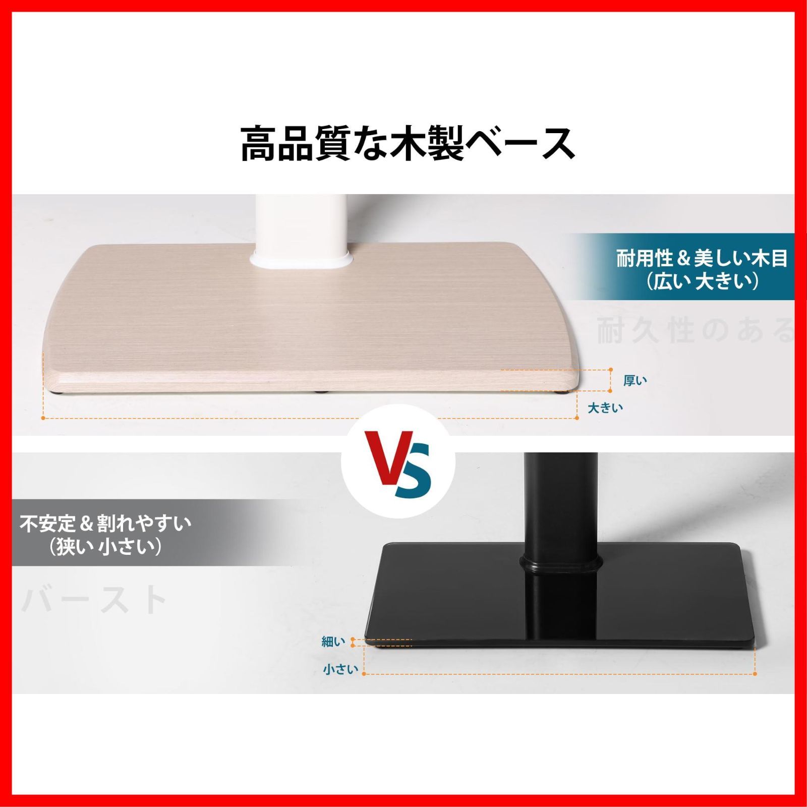 【安全な素材】優れた木目高品質木製底板、丈夫で耐震性もあり、テレビが倒れるや割る心配がなく安心です。ラックの荷重は40kgまで、高価のテレビを安心にサポートできます。レコーダーや大型ゲーム機など、台座の上に安心に設置できます。