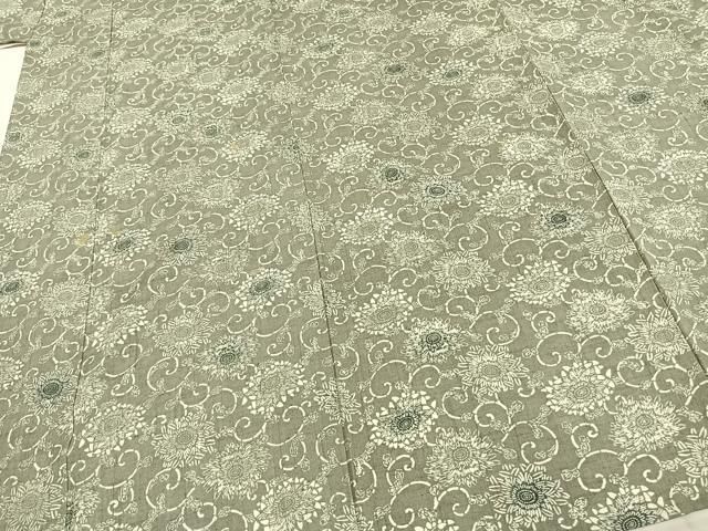 平和屋着物▽上質な小紋 単衣 紬地 型染め 花唐草文 正絹 fy