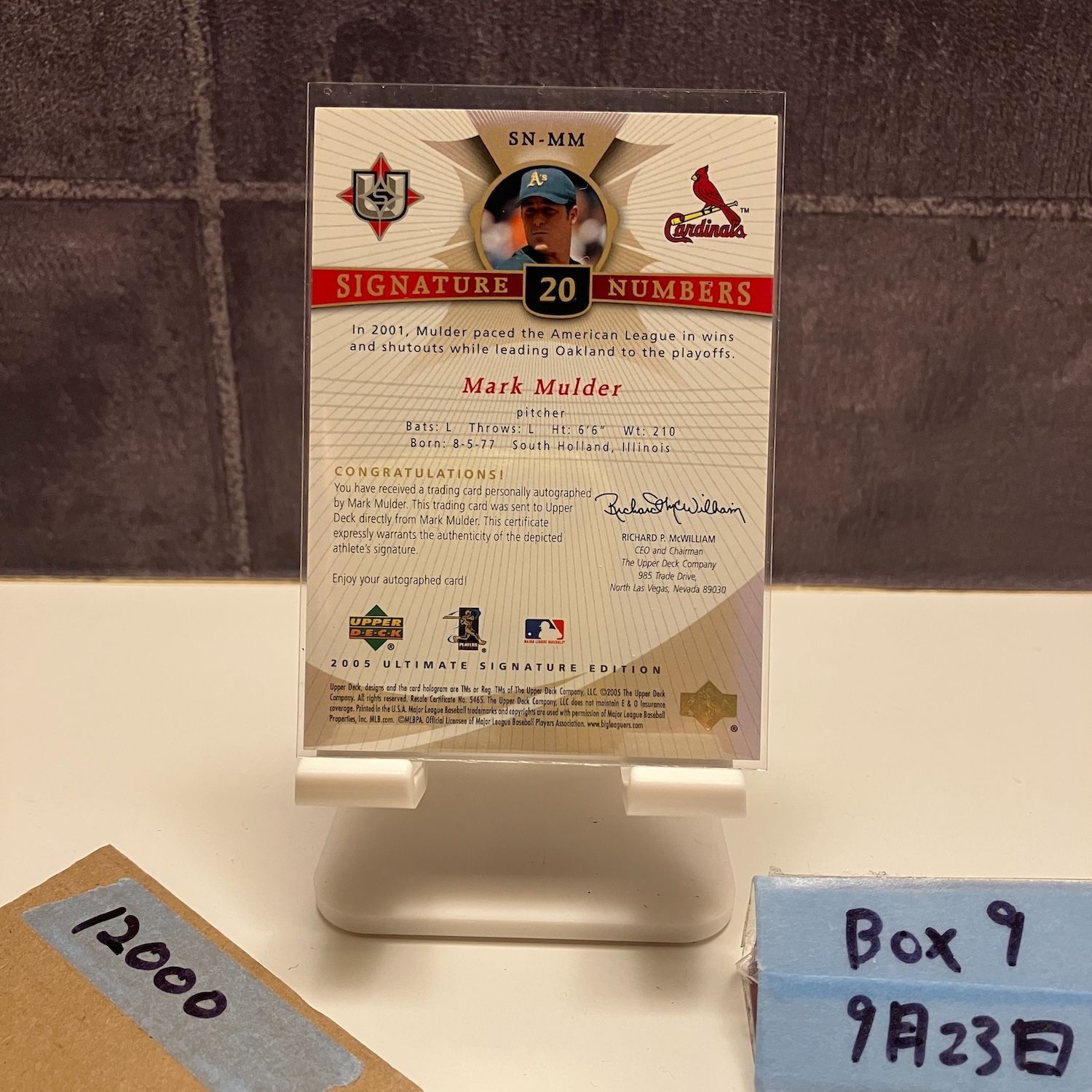 2005 Upper Deck Ultimate Signature Edition Mark Mulder 10/20 直筆サイン St. Louis Cardinals Signature Numbers